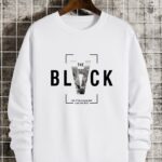 - Design: “THE BLACK” slogan with a cityscape print within a “V” shape, and a smaller slogan below.