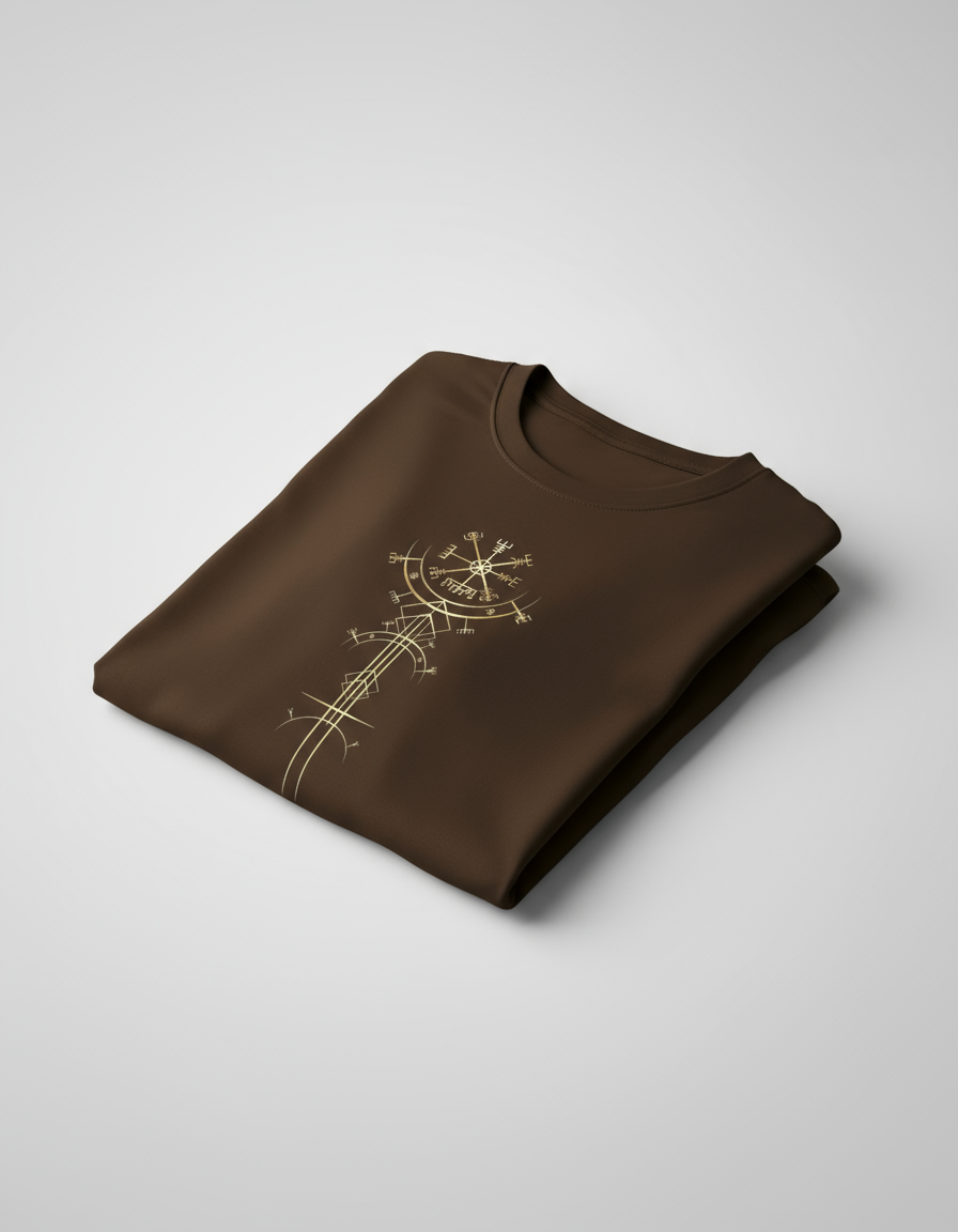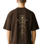 Step into the extraordinary with the MYSTIC MERIDIAN T-shirt, a statement piece tailored for those who appreciate bold symbolism and contemporary fashion. This oversized brown tee showcases an intricate gold geometric motif on the back, inspired by mystic runes and spiritual alignment. The symbolic print extends vertically, evoking the concept of a ‘meridian’ or flow of energy, lending a unique and powerful presence to the design. On the front, the NeXXa logo in crisp white sits prominently across the chest, resonating quality and brand exclusivity. Crafted from premium cotton, the T-shirt offers a soft, durable feel and effortless comfort for everyday wear. Its relaxed, unisex fit ensures easy styling, whether paired with casual trousers or layered for a fashion-forward ensemble. The MYSTIC MERIDIAN T-shirt embodies spirit, design, and comfort, making it an essential for any modern wardrobe seeking meaning and originality.