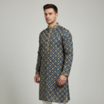The Neelkanth Kurta epitomizes the perfect fusion of traditional Indian craftsmanship and contemporary elegance. Inspired by the deep blue hues of classic Indian textile arts, this kurta features intricate gold geometric patterns that add a regal touch to the garment. Crafted from premium breathable cotton, it ensures comfort and style for all-day wear during festive celebrations, weddings, or cultural events. The design includes a neat mandarin collar and a buttoned placket with subtle detailing, enhancing its sophisticated look. The artistry reflects Jaipur’s rich heritage, making this kurta a timeless staple that honors tradition while embracing modern menswear aesthetics.