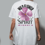Back Design: Large purple wildflower with bold “Wildflower Spirit” graphic and accent details.