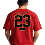 Capture the spirit of urban legend with the WINDCITY LEGEND 23 T-shirt. Tailored in vibrant red, this oversized tee celebrates the essence of Chicago with a striking back print—‘Chicago’ scripted above a powerful black and gold ’23’ numeral, an homage to legendary sports legacy and unmistakable American style. The U.S.A. emblem below the number enhances its bold, athletic theme. Premium cotton construction ensures exceptional comfort, making it ideal for everyday wear, sporting events, or style-driven outings. The front keeps things minimal, finished with a tasteful NeXXa logo on the sleeve, lending designer sophistication without distracting from the statement back graphic. The relaxed silhouette and crew neck make this tee versatile for layering or wearing solo. Designed for fans, trendsetters, and sport culture devotees, WINDCITY LEGEND 23 is a timeless tribute to every style icon and urban athlete.
